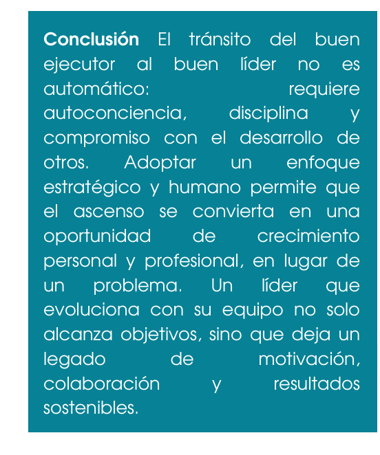 Muchos profesionales exitosos como ejecutores encuentran que sus habilidades actuales no son suficientes para enfrentar los desafíos de liderar personas. Este fenómeno puede convertirse en un problema si no se aborda de manera consciente